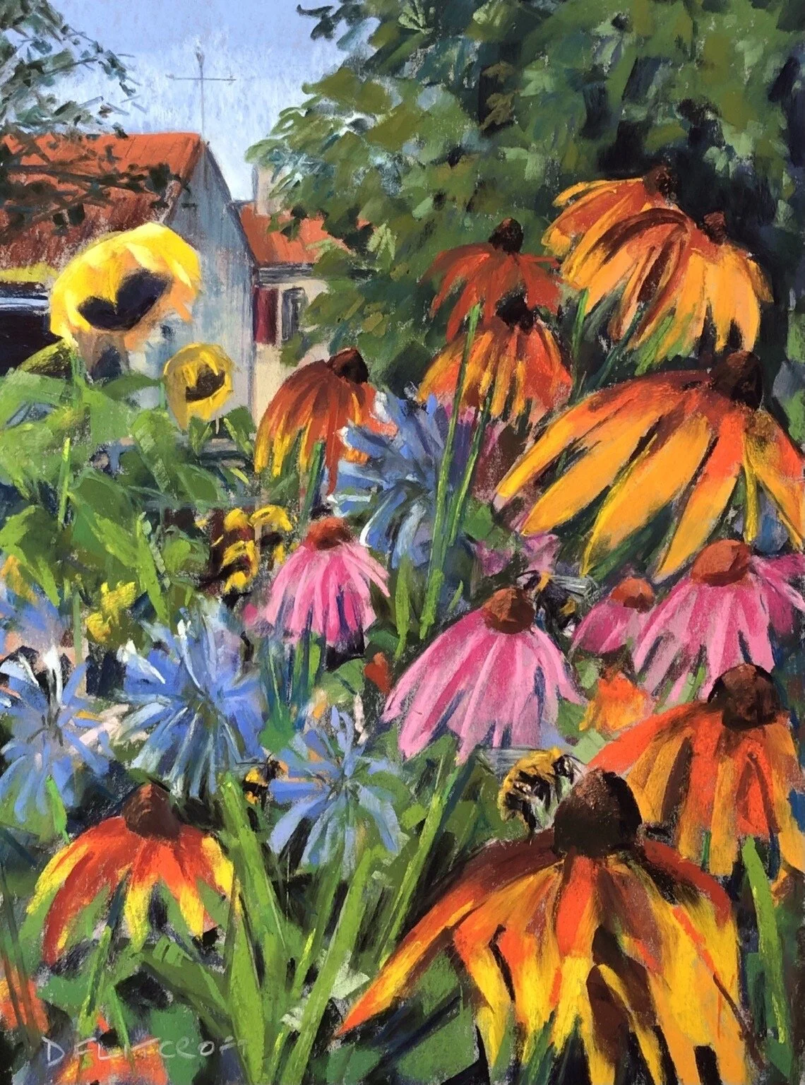 Wildflowers and Bumblebees 2. Soft pastel on pastelmat. Original Sold. Prints FOR SALE £90 + local taxes. Click to buy now.